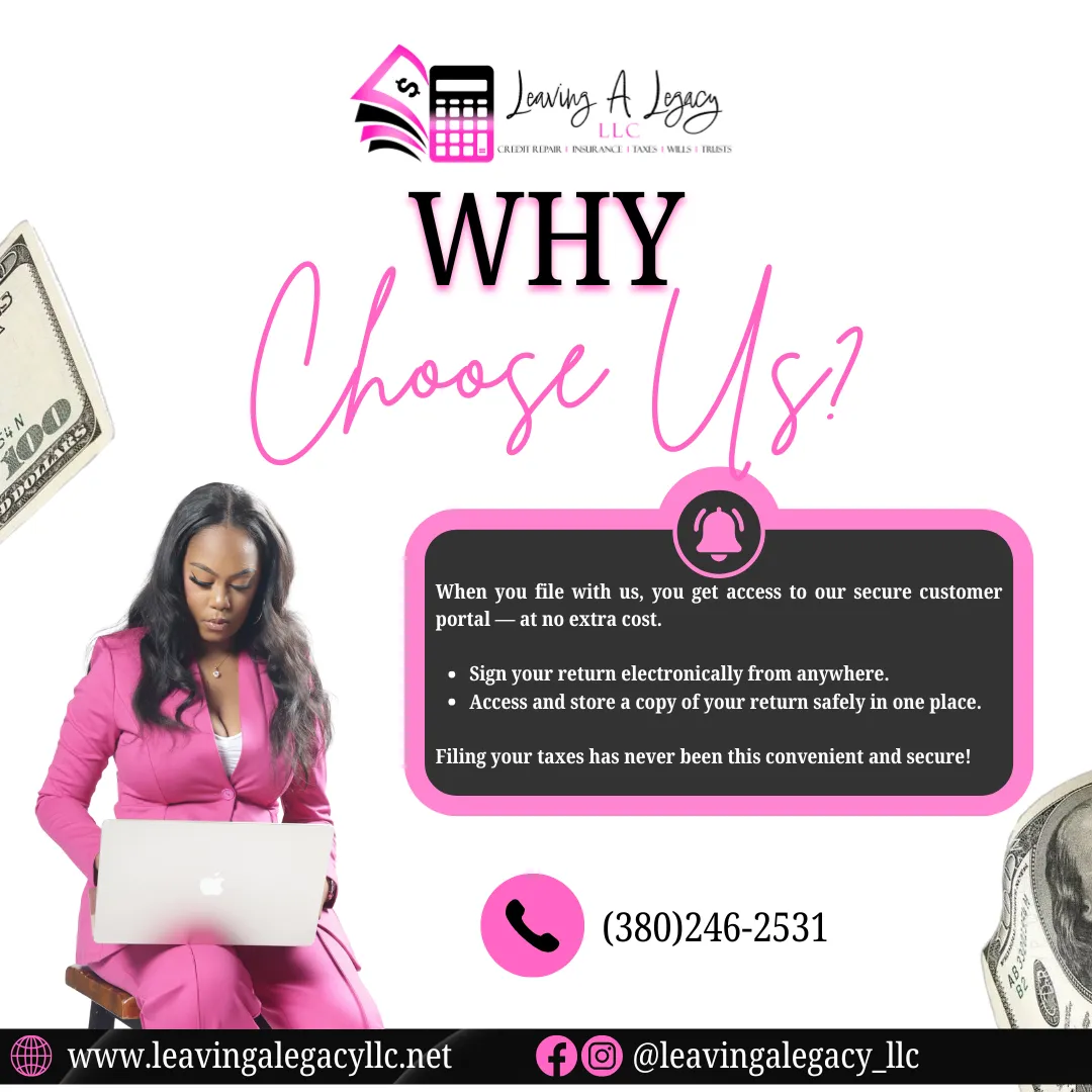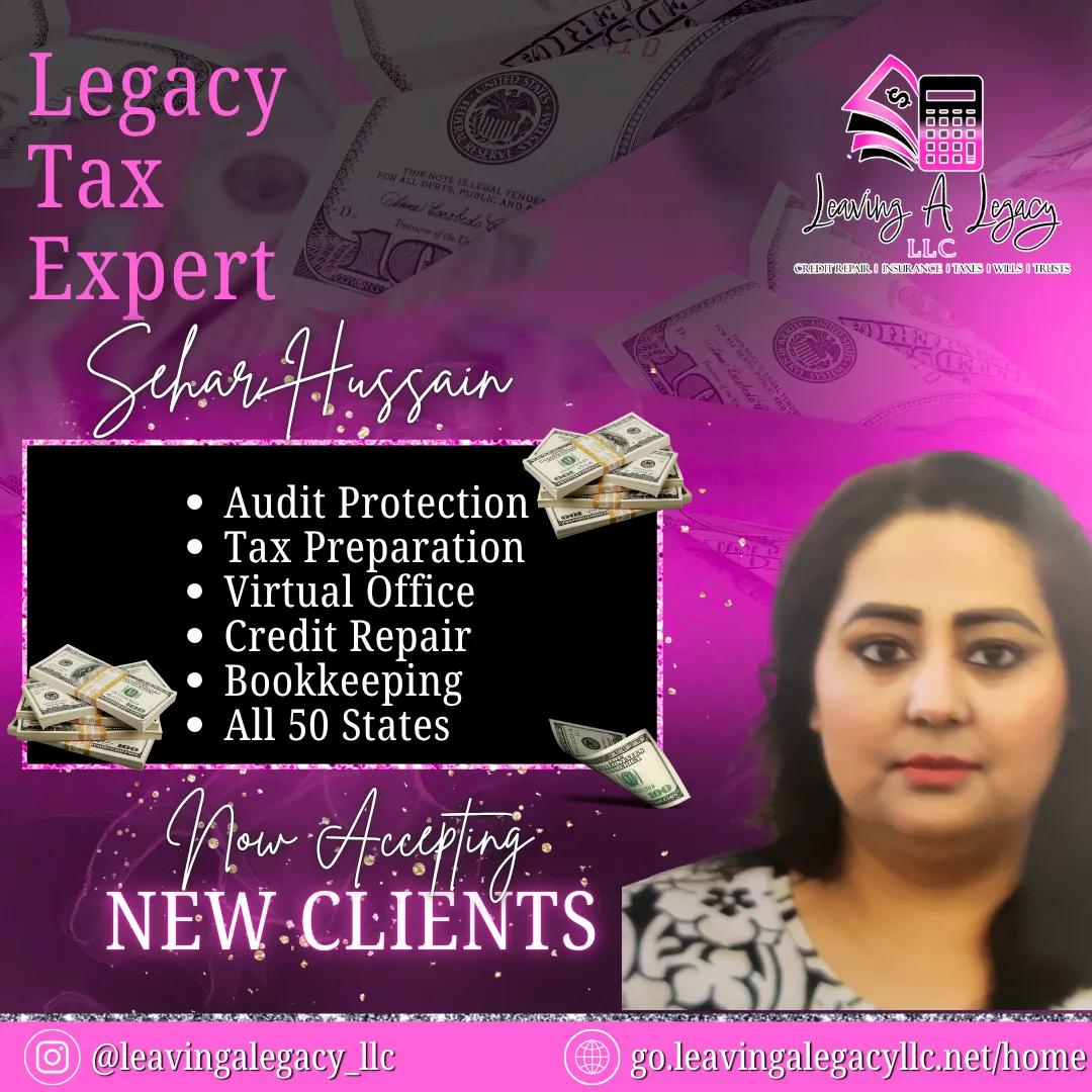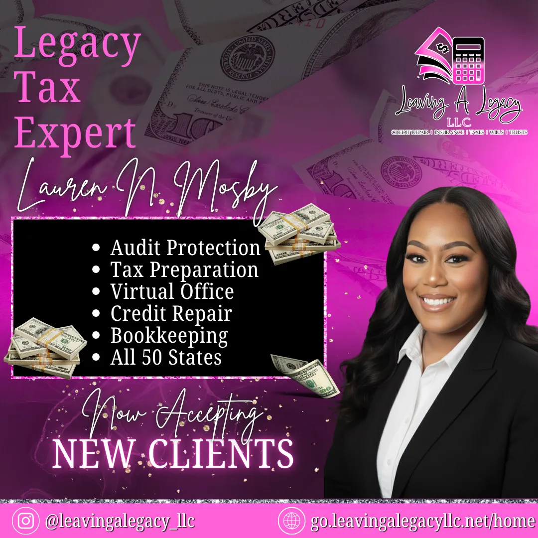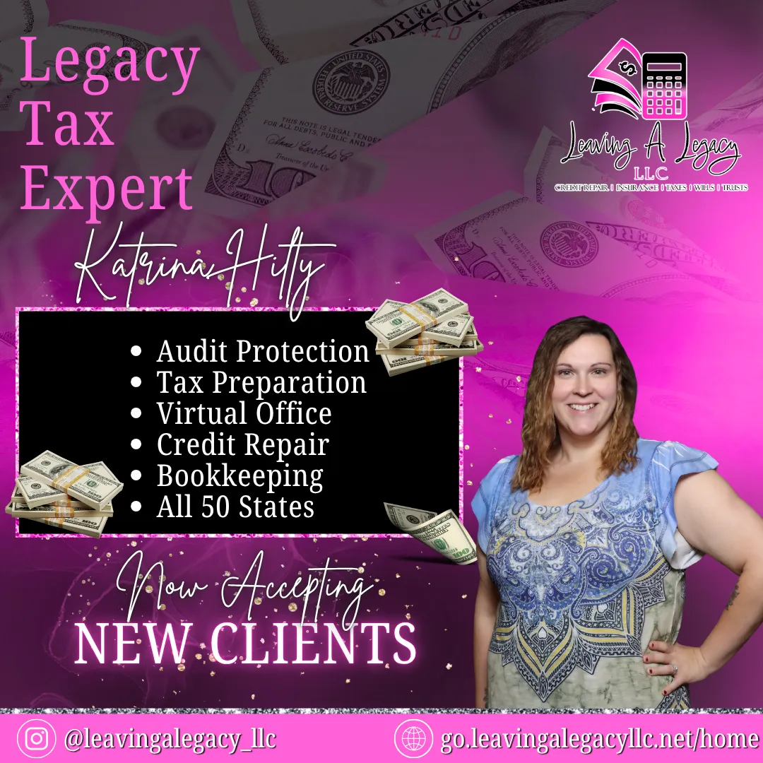 Leaving a Legacy LLC provides thorough tax preparation services for individuals and businesses, including current year filings, prior year returns, and amended returns. Our goal is to ensure accuracy, maximize refunds, and keep clients compliant with up-to-date tax regulations.